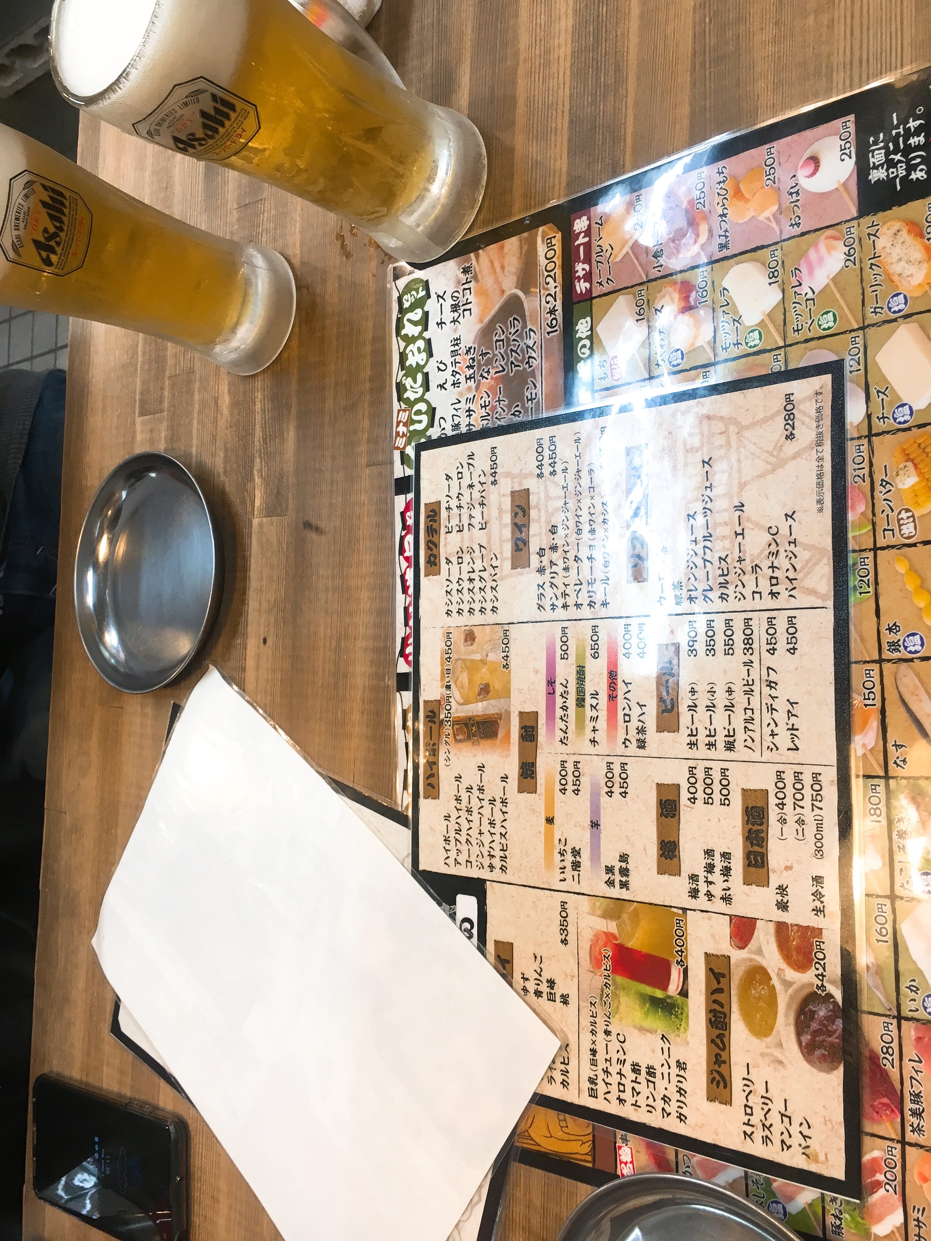 먼저 오사카에서 먹는 마지막 맥주와 함께 쿠시카츠를 주문했다.
