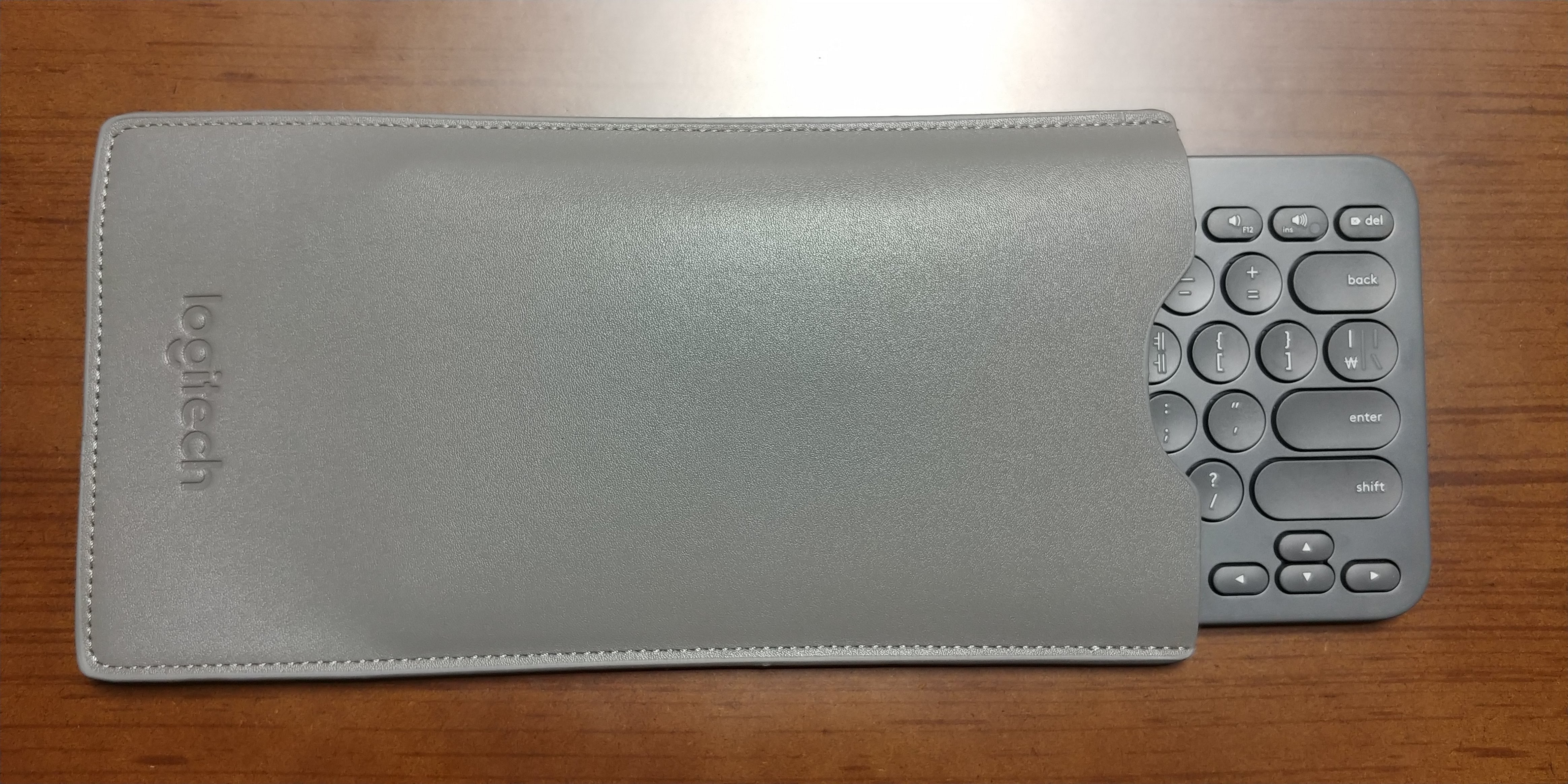 키보드를 파우치에 넣은 모습이다.
